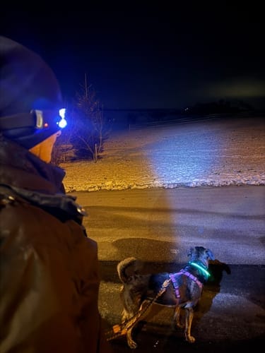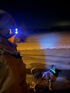 Använder den när jag går med hunden på kvällarna. Känns trygg och smidig.